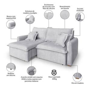 Assento: Retrátil, percintas elásticas italianas, molas bonel, espuma HR28 + plumante em silicone