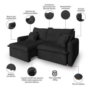 Assento: Retrátil, percintas elásticas italianas, molas bonel, espuma HR28 + plumante em silicone