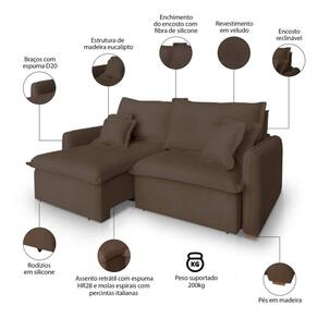 Assento: Retrátil, percintas elásticas italianas, molas bonel e espuma HR28 + plumante em silicone