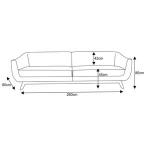 Dimensões do Produto Largura: 260 cm. Altura: 89 cm. Profundidade: 84 cm. Peso: 50 Kg.