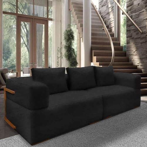 Almofadas de encosto soltas, preenchidas com fibra de silicone para maior aconchego.