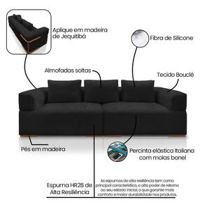 O Sofá Scott 4 Lugares da Lucadi combina o aconchego do tecido bouclé com a elegância natural do aplique em madeira Jequitibá, criando uma peça sofisticada, versátil e extremamente confortável. Seu design modular, composto por dois módulos de 1,30 m, estética contemporânea, funcionalidade e presença para salas de estar, varandas gourmet e ambientes integrados. O toque macio do bouclé, aliado ao assento com molas bonel, espuma HR28 e plumante em silicone, garante uma experiência acolhedora e durável.