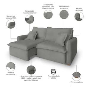 Assento: Retrátil, percintas elásticas italianas, molas bonel e espuma HR28 + plumante em silicone