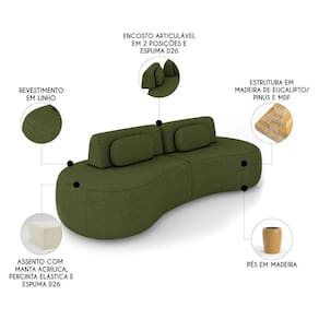 Sofá 4 Lugares 280cm Orgânico Mellanie Linho Verde Z32 - Mpozenato