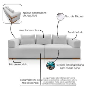 Assento superconfortável, composto por percintas elásticas italianas, molas bonel, espuma HR28 e plumante em silicone.