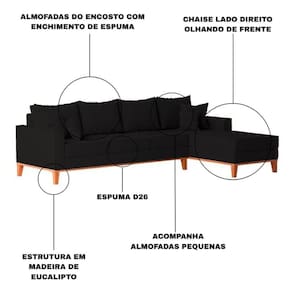 Montagem: O produto vai montado, apenas rosquear os pés e encaixar a Chaise no Sofá na peça lateral.