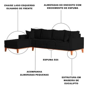 Montagem: O produto vai montado, apenas rosquear os pés e encaixar a Chaise no Sofá na peça lateral.