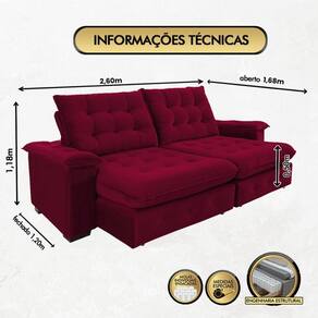 Sofá Coliseu Retrátil e Reclinável Super Pillow 2,60m - Sofisticato