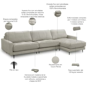 Sofá modulado composto por 1 modulo com braço, 1 módulo central e 1 módulo chaise.