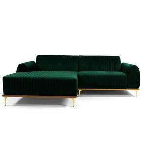 Sofá 4 Lugares Com Chaise Esquerdo Para Sala Molino 265cm D02 Veludo Verde Musgo C-303 - Lyam Decor O Sofá 4 Lugares com Chaise Esquerdo Para Sala de Estar Molino 265cm D02 Veludo Verde Musgo C-303 - Lyam Decor exala formosura e elegância! Excelente opção para dispor em sua sala de estar ou espera, recepção, hall de entrada, dormitório, qualquer área de circulação ou antessala entre um cômodo e outro, as possibilidades de combinação são infinitas. Seu protagonismo é notório, sem sombra de dúvidas é perfeita para qualquer ambientação que desejar colocá-la. Com sua resistente estrutura, na cor castanho com detalhes em dourado, o encosto e assento revestidos em veludo, deixarão sua decoração ainda mais sofisticada. Oferecendo máximo conforto sem deixar de transmitir todo a magnitude que seu lar merece! Dimensões do produto (L x A x P) 265 x 76 x 150 cm Medidas Internas: Altura do assento: 44 cm Largura do assento: 115 cm Profundidade do assento: 54 cm Profundidade externa (lado sem Chaise): 85 cm Altura livre do encosto: 35 cm Profundidade livre de assento (Chaise): 119 cm Largura Chaise: 150 cm Largura do braço: 25 cm Altura interna do braço: 19 cm Altura externa do braço: 60 cm Altura dos pés: 16 cm Características: Estrutura em madeira de eucalipto. Partes em MDF ou OSB; Revestimento Veludo; Base em madeira envernizada na cor castanho com pés de alumínio na cor D'Ouro; Assento fixo com espuma D-28 HR sobre chapas de OSB; Encosto fixo com espuma D-23 sobre percintas elásticas; Braço com espuma D-23; Chaise do lado Esquerdo do sofá. Suporta até 120 Kg por assento. - Por se tratar de estofado as medidas podem ter uma pequena variação de até 3 cm. - A tonalidade do produto real poderá ter ligeira variação devido o lote de tecidos. Observações importantes: - Produto para residencial em ambiente interno, não devendo ficar exposto diretamente ao sol, calor e umidade excessivos. - Pode haver alguma diferença de tonalidade entre a imagem e o produto real, por conta do tratamento de imagens e a calibração de cores do seu monitor. - As imagens são meramente ilustrativas, não acompanham objetos de decoração e eletrônicos. - Ao receber a mercadoria, o cliente deve verificar as condições da embalagem, caso haja alguma não assine o comprovante de recebimento. - Montagem, desmontagem e outras instalações serão de responsabilidade do cliente. Não nos responsabilizamos, no ato da , por subir escadas/elevadores ou pelo transporte por guincho em apartamentos. Eventuais despesas são de responsabilidade do comprador. - Confira as dimensões do produto e certifique-se de que passará normalmente por supostos elevadores, portas, escadas e/ou corredores de sua residência. Altura Montado: 76 | Largura Montado: 265 | Profundidade Montado: 150