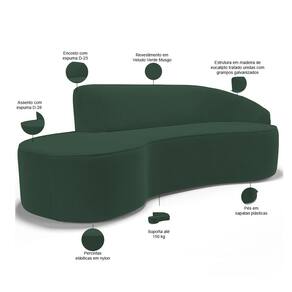 Sofá 4 Lugares Curvo Sala de Estar Living Firenze Direito D02 Veludo Verde Musgo 260 cm C-303 - Lyam