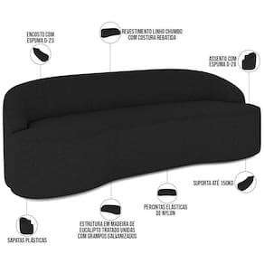 Sofá 4 Lugares Curvo Sala de Estar Living Lótus D02 Linho Chumbo 260 cm D-465 - Lyam Decor - Grafite