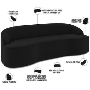 Revestimento em Veludo na cor Preto, suave ao toque.
