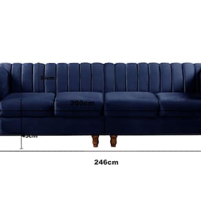 É necessário que haja uma ou mais pessoas no local para receber, desembalar, e conferir o produto. Produto Montado: Sim Acompanha Almofadas extras: Não Almofada do assento: Removível Almofada do encosto: Não Possui Altura do assento até o chão: 45.0000 Altura do Encosto: 80 cm Ambiente Principal: Sala de Estar codigo_ean: 7900288191502 Complexidade da Montagem: Baixa: pode ser montado por uma pessoa sozinha Cor: Azul Cor do Produto: Azul Informações Complementares: 120Kg por Acento Itens Inclusos: 1 Sofá, Manual de Montagem e Kit Ferragens Linha ou Coleção: Realeza Chesterfield Marca: BELLA DECOR Material dos Pés: Madeira Maciça Necessita Montagem: Sim Origem do Produto: Importado Peso: 82 kg Pet Friendly: Não Possui Percintas Elásticas: Sim Possui Pés: 08 Possui Rodízio: Não Recomendações de Uso, Manutenção e Limpeza: Limpeza e cuidados: pode ser utilizado aspirador de pó, escova com cerdas macias ou limpeza a seco. Não utilizar produtos químicos, abrasivos ou limpeza a vapor. Evitar exposição prolongada ao sol. Sistema de Montagem: Fixar os Pés Suporta Até (kg): 120 kg Tecido Predominante: Suede Tipo de Encosto: Fixo Tipo de Mola: Molas Ensacadas (Molas ensacadas) Tipo de Sofá: Sofá Comum