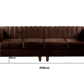 É necessário que haja uma ou mais pessoas no local para receber, desembalar, e conferir o produto. Produto Montado: Sim Acompanha Almofadas extras: Não Almofada do assento: Removível Almofada do encosto: Não Possui Altura do assento até o chão: 45.0000 Altura do Encosto: 80 cm Ambiente Principal: Sala de Estar codigo_ean: 7900288192417 Complexidade da Montagem: Baixa: pode ser montado por uma pessoa sozinha Cor: Marrom Cor do Produto: Marrom Informações Complementares: 120Kg por Acento Itens Inclusos: 1 Sofá, Manual de Montagem e Kit Ferragens Linha ou Coleção: Realeza Chesterfield Marca: BELLA DECOR Material dos Pés: Madeira Maciça Necessita Montagem: Sim Origem do Produto: Importado Peso: 82 kg Pet Friendly: Não Possui Percintas Elásticas: Sim Possui Pés: 08 Possui Rodízio: Não Recomendações de Uso, Manutenção e Limpeza: Limpeza e cuidados: pode ser utilizado aspirador de pó, escova com cerdas macias ou limpeza a seco. Não utilizar produtos químicos, abrasivos ou limpeza a vapor. Evitar exposição prolongada ao sol. Sistema de Montagem: Fixar os Pés Suporta Até (kg): 120 kg Tecido Predominante: Suede Tipo de Encosto: Fixo Tipo de Mola: Molas Ensacadas (Molas ensacadas) Tipo de Sofá: Sofá Comum
