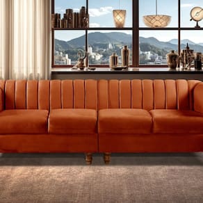 Sofá Realeza Chesterfield. Este ícone de requinte e conforto é a escolha perfeita para aqueles que buscam um toque de luxo atemporal em sua decoração. As linhas suaves e o perfil imponente trazem uma sensação de nostalgia, adicionando um toque retro-chique ao seu ambiente.