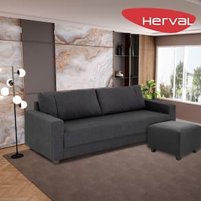 Sofá 4 Lugares e Puff Herval Clean Linho Grafite, 230 cm