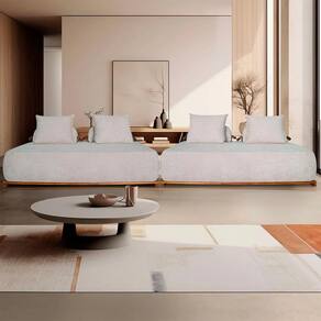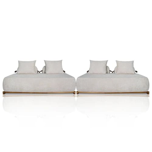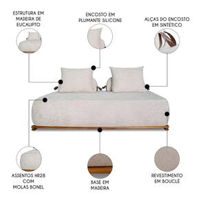 Madeira de eucalipto, Espuma HR28, Plumante de silicone, Molas bonel, Tecido BoucléVendido e entregue por MPOZENATO