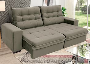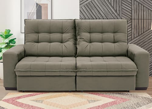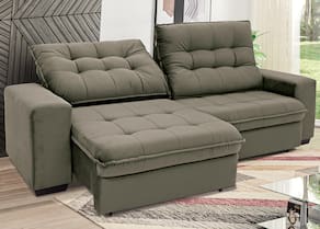 Com 229cm de largura, e 95cm (fechado) / 158cm (aberto) de profundidade, o sofá da Linoforte tem o encosto com 6 opções de reclino e os assentos, com capacidade para suportar até 120kg, são extensíveis. Dá para ficar praticamente deitado nele e curtir seus momentos de folga com muito conforto.