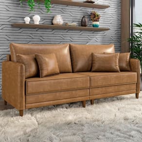 Sofá 4 Lugares Living 232cm Pé Madeira Zoe Sintético Camel Z08 - Mpozenato