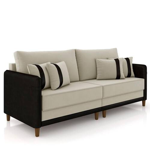 O Sofá 4 Lugares Living 252cm Zoe Z08 Veludo Bege/Sintético Preto da Mpozenato é o móvel perfeito para sua Sala de Estar.