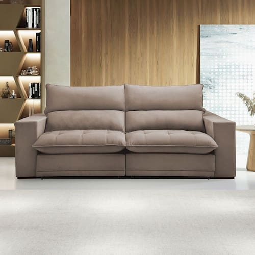 O(a) Sofá 4 Lugares Martinho Retrátil 20585 Veludo Bege Escuro - Celflex é produzido em Eucalipto na escala de brilho Fosco, e possui um grau de dificuldade de montagem: Médio.