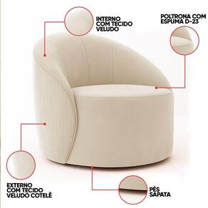 Sofá 4 Lugares Orgânico 220cm Morgan E 2 Poltronas Lua Cotelê/veludo Bege D03 - D'rossi O Kit Sofá Morgan 220cm e 2 Poltronas Lua em Veludo/Cotelê Bege é a escolha perfeita para quem busca aliar sofisticação, conforto e praticidade. O sofá de quatro lugares possui estrutura em madeira de eucalipto reflorestada e MDF, garantindo resistência e longa durabilidade. Seu assento em espuma D-23 proporciona maciez e aconchego, enquanto as poltronas Lua complementam o conjunto com o mesmo padrão de qualidade. O grande diferencial está no encosto: tanto as poltronas quanto o sofá namoradeira contam com acabamento em veludo cotelê texturizado, que confere toque macio, sofisticação e um charme único à decoração. Possuem também, pés fixos com sapatas plásticas, que oferecem estabilidade, protegem o piso contra riscos e mantêm o visual elegante. Com linhas orgânicas, tecidos de alta qualidade e quatro almofadas decorativas exclusivas, o kit é a combinação ideal de estilo e funcionalidade. Uma escolha versátil que transforma salas de estar, recepções ou ambientes integrados em espaços acolhedores e cheios de personalidade. Dimensões da Poltrona: Altura Total: 85 cm Largura Total: 91 cm Profundidade Total: 93 cm Altura do Encosto: 42 cm Largura total livre do Assento: 62 cm Profundidade do Assento: 63 cm Altura do Assento: 40 cm Altura do chão ao Assento: 45 cm Largura do encosto: 87 cm Peso: 30 kg Dimensões do Sofá: Altura Total: 80 cm Largura Total: 220 cm Profundidade Total: 70 cm Altura Interna do Encosto: 40 cm Largura total livre do Assento: 220 cm Profundidade do Assento: 55 cm Altura do chão ao Assento: 45 cm Peso: 32 kg OBSERVAÇÃO: Este kit inclui 4 almofadas decorativas exclusivas do sofá. Especificações do Produto: Estrutura: Madeira Eucalipto Reflorestada e MDF Revestimento: Veludo/Cotelê Material do Estofamento da Poltrona: D-23, Manta Acrílica e Percintas Elásticas Material do Estofamento do Sofá: Assento D-23; Encosto D-20 e Percintas Elásticas Quantidade de Lugares do Sofá : 4 Lugares Sofá Possui Braça: Não Peso Suportado: Até 300 Kg Tipo de Pés: Fixos com sapatas plásticas Tipo de Encosto: Fixo É retrátil: Não É reclinável: Não Diferenciais: Design orgânico.Tecido de alta qualidade. Sistema de Montagem: Não requer montagem estrutural Montagem: Produto vai montado Complexidade da Montagem: Baixa Garantia: 90 dias contra defeito de fabricação Instruções de Limpeza: Utilizar um pano limpo e levemente úmido Quantidade de Volumes: 3 Caixas Medida das Embalagens: Caixa 1 : 223 x 83 x 73cm; Caixa 2: 95 x 93 x 87cm; Caixa 3: 95 x 93 x 87cm. Entrega: É feita somente até o térreo ou portaria. Confira sempre as medidas das embalagens para assegurar que o produto passe por portas e escadas do local.