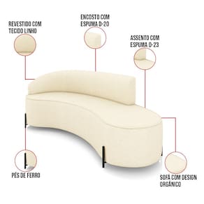 O Sofá 4 Lugares Orgânico Morgan de 220 cm, é a combinação perfeita de conforto e estilo. Com uma estrutura robusta de madeira de eucalipto e MDF, este sofá garante durabilidade e resistência. Os assentos e encostos são fixos, o encosto é preenchido com espuma D-20, proporcionando suporte ideal para suas costas, enquanto o assento com espuma D-23 oferece uma experiência de assento firme e aconchegante. O design orgânico remete às formas encontradas na natureza como ondas, folhas ou conchas que além de se moldarem ao corpo humano, evocam uma sensação de calma e equilíbrio. Seu formato curvo e sem braços traz um toque de modernidade, permitindo que o sofá se encaixe harmoniosamente em diversos estilos de decoração, desde o minimalista até o mais ousado. A fluidez das linhas cria um ambiente acolhedor e convidativo, perfeito para qualquer ocasião. Os pés de ferro, além de fornecerem estabilidade, trazem um toque industrial que contrasta lindamente com o elegante revestimento em Linho. Seja para receber amigos, relaxar após um dia longo ou simplesmente adicionar um toque de elegância ao seu lar, o Sofá Orgânico é a escolha ideal. Não perca a oportunidade de elevar a decoração da sua casa com esta peça única. Adquira já o seu e descubra o que é conforto e estilo em um só lugar!