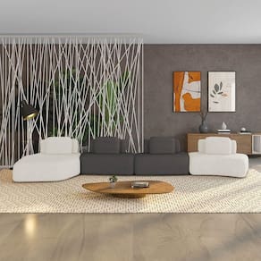 Estrutura: Madeira de Eucalipto e MDF; Revestimento: Bouclê; Enchimento: Fibra siliconada, espuma D-33, percintas elásticas e molas espirais.Vendido e entregue por WebContinental