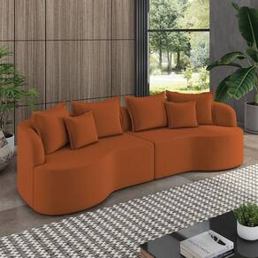O Sofá 4 Lugares Orgânico Living Mersa de 250 cm é a escolha ideal para quem busca conforto, estilo e durabilidade. Com design modular, o sofá Mersa é versátil e pode se adequar a diferentes layouts de sala. Ele possui revestimento em Veludo, perfeito para trazer um toque de modernidade para sua sala. Conta com uma estrutura feita em madeira de lei (eucalipto), devidamente tratada e aparelhada, oferecendo maior resistência ao móvel. Os reforços com cantoneiras e chapas em MDF garantem uma estrutura sólida e resistente. Tanto o encosto quanto o assento possuem cintas metálicas e molas espirais no assento, oferecendo conforto, suporte e aconchego como poucos sofás no mercado. O estofado assegura um toque macio e aconchegante com espumas D-28 no assento, fibra siliconada 100% no encosto e espumas D-23 nos braços. Tudo pensado para proporcionar uma sensação acolhedora, perfeita para relaxar enquanto você assiste a um filme ou lê um bom livro. Sem contar que os pés de madeira acrescentam-se ao design garantindo maior estabilidade ao móvel. E tem mais, além do encosto e assento serem fixos ideal para quem deseja unir conforto, estilo e praticidade, o sofá ainda acompanha charmosas almofadas decorativas, tornando-o uma peça perfeita. Se você busca um sofá que combine sofisticação extra, durabilidade e estilo, o Living Mersa é a escolha certa. Com ele, você terá uma peça única que valoriza o seu lar e proporciona o descanso merecido após um dia agitado. Não perca a chance de adquirir esse sofá e elevar o nível de conforto e beleza do seu espaço! OBSERVAÇÃO IMPORTANTE: A é realizada no informado, não realizamos o para andares superiores, como subir escadas, elevadores ou guinchos. Não realizamos montagens, desmontagens ou instalações. Todos esses serviços são de responsabilidade do comprador. Dimensões do Produto: Altura Total: 95 cm Largura Total: 250 cm Profundidade Total: 103 cm Peso: 64 kg Outras Medidas: Largura total livre do assento: 238 cm Largura por lugar: 59 cm Profundidade do assento: 50 cm Altura do assento ao chão: 46 cm Altura do encosto: 47 cm Largura do Braço: 6 cm Especificações do Produto: Estrutura: Madeira de eucalipto/MDF. Espuma do Encosto: 100% Fibra Siliconada Espuma do Assento: D-28 Espuma do Braço: D-23 Revestimento: Veludo Azul Possui Pés: Sim Tipo de Pés: Pés de Madeira Possui Rodízios: Não Peso Suportado: Até 150 Kg por assento Tipo de Encosto: Fixo com almofadas soltas Tipo de Assento: Fixo Modularidade: Módulos que podem ser realocados sem dificuldade. Quantidade de Lugares: 4 Lugares Quantidade de Assentos: 2 É retrátil: Não É reclinável: Não Diferenciais: Design moderno;Encosto e assento com percintas elásticas; Almofadas decorativas; Com reforços de cantoneiras; Pés de madeira. Manual de Montagem: Sim Complexidade da Montagem: Baixo Montagem: O produto é enviado montado, sendo necessário somente parafusar os pés. Garantia: 90 dias contra de fabricação Instruções de Limpeza: Utilizar um pano limpo e levemente úmido Você irá Receber: 01 Sofá Entregue em: 02 Volumes