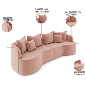 Sofá 4 Lugares Orgânico Living 250cm Mersa Veludo K01 - D`Rossi - Rosê