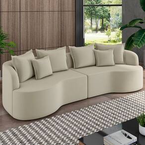 Com linhas curvas e sinuosas que parecem dançar suavemente, o Sofá Orgânico Ekos, da Lyam Decor, é um convite ao charme e ao aconchego. Afinal, o design curvo desse sofá 4 lugares parece sussurrar promessas de conforto, como o abraço de um amigo querido, enquanto as almofadas adicionam um toque moderno ao ambiente.