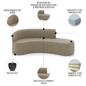 O revestimento em suede oferece um toque macio e visual aconchegante, ideal para compor ambientes com elegância e conforto. Uma escolha perfeita para quem busca Estilo Natural e Sofá Estilo Orgânico.