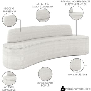 O impressionante Sofá 4 Lugares para Sala de Estar Living 230cm Koane D06 Bouclê Off White, da Mpozenato, é o estofado perfeito para elevar seu espaço de convivência! Projetado com um toque moderno, esse sofá curvo apresenta estilo e funcionalidade, o que o torna indispensável para qualquer casa contemporânea.