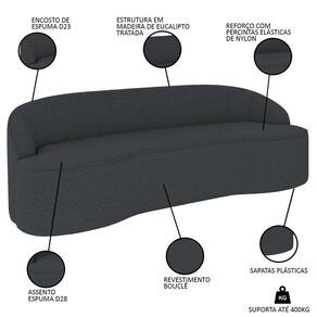 Com design curvo e incrivelmente moderno, o Sofá 4 Lugares para Sala de Estar Living 260cm Theo D06 Bouclê Cinza Escuro, da Mpozenato, é ideal para a sua sala de estar ou living, pois é uma ótima opção para quem busca um estofado confortável, sem abrir mão do estilo e funcionalidade.