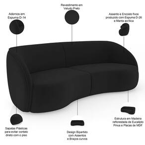 Design bipartido com assentos e braços curvos.