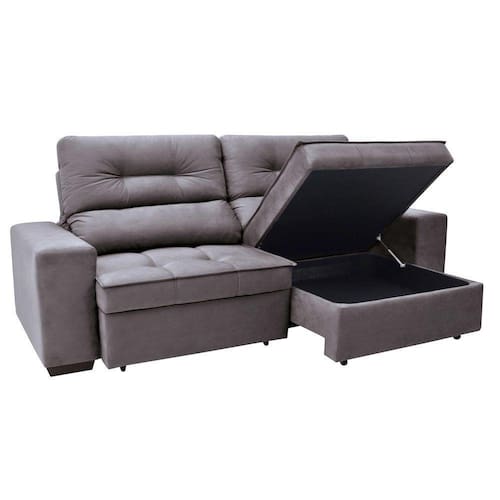 Características: Modelo: Artemis Tipo de estofado: 4 lugares Estrutura: Madeira de reflorestamento (eucalipto e pinus) seca e tratada, chapas de OSB e percintas elásticas Revestimento: Tecido Suede Assento: Espuma D33, Retrátil Encosto: Fibra de Poliéster Siliconizada, Reclinável Braço: Espuma D23 Capacidade de carga: Cada assento suporta até 120 Kg Altura do assento ao chão: 46 cm Fixação: Grampos de aço Pés: Plástico rígido tabaco e rodízios Altura dos pés: 6 cm Dimensões internas do baú: Largura 82 x Altura 14 x Profundidade 82 cm