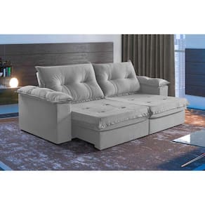 Sofá 4 Lugares Retrátil e Reclinável Martins M-164 Veludo - Cinza