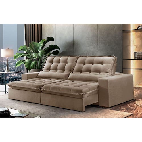 Sofá 4 Lugares Retrátil e Reclinável Orion Veludo Palha - Móveis Mix Com os Estofados Móveis Mix Você Leva Conforto e Beleza Para o Seu Lar. Seu Design Remete Aconchego e Você Ainda Leva Lindas Almofadas Rineira.