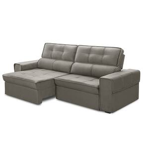 Sofá 4 Lugares Retrátil Reclinável 250cm Veludo Lorient Ferguile - Cinza Claro