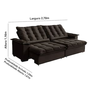 Dimensoes: Altura: 116 cm Largura: 270 cm Profundidade: 108 cm Peso: 80,00 kg
