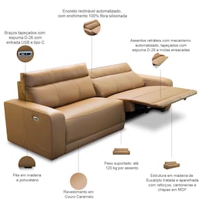 Além disso, esse sofá 4 lugares conta com espaço amplo para a família ou amigos, enquanto seu mecanismo elétrico reclinável ajusta o assento e o encosto com muita praticidade - sem esforço e com total suavidade. Já a estrutura robusta e durável garante segurança e resistência, ao passo que os braços com entrada USB trazem praticidade para carregar seus dispositivos sem sair do sofá.