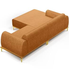 O Sofá com Chaise Esquerdo Para Sala de Estar Molino 300cm D02 da Lyam Decor, exala formosura e elegância! Excelente opção para dispor em sua sala de estar ou espera, recepção, hall de entrada, dormitório, qualquer área de circulação ou antessala entre um cômodo e outro, as possibilidades de combinação são infinitas. Seu protagonismo é notório, sem sombra de dúvidas é perfeita para qualquer ambientação que desejar colocá-la. Com sua resistente estrutura, na cor castanho com detalhes em dourado, deixarão sua decoração ainda mais sofisticada. Oferecendo máximo conforto sem deixar de transmitir todo a magnitude que seu lar merece!