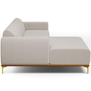 O Sofá com Chaise Esquerdo Para Sala de Estar Molino 350cm D02 da Lyam Decor, exala formosura e elegância! Excelente opção para dispor em sua sala de estar ou espera, recepção, hall de entrada, dormitório, qualquer área de circulação ou antessala entre um cômodo e outro, as possibilidades de combinação são infinitas. Seu protagonismo é notório, sem sombra de dúvidas é perfeita para qualquer ambientação que desejar colocá-la. Com sua resistente estrutura, na cor castanho com detalhes em dourado, deixarão sua decoração ainda mais sofisticada. Oferecendo máximo conforto sem deixar de transmitir todo a magnitude que seu lar merece!