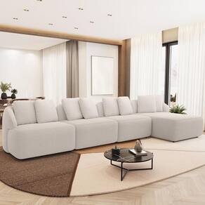ColorSimple: Bege | Cor: Bege | Color: Bege | Orientação do Sofá: Linear | Peso: 200 kg | Peso máximo suportado: 480 kg | Requer montagem: Não | Tipo de produto: Sofá Modulado com Chaise | Cor dos pés: Marrom Escuro | Mecanismo de abertura do produto: na | Material de enchimento do encosto: Fibra Siliconada | ProductWarranty: 90 dias após o recebimento do produto | Model: Arlo | Estilo: Moderno | Linha: Sala de Estar, Living | Fabricante: Lyam Decor | Unidades por kit: 1 | Material do estofamento: Veludo | Formato do sofá: Orgânico | ProductContents: 01 Sofá | ProductInstructions: Produto para uso em ambiente interno, nao devendo ficar exposto ao sol, calor e umidade excessivos. | OriginCountry: Brasil | ProductWeight: 200 kg | SupplierSimpleName: Sofá 5 Lugares com Chaise Direito Sala Living 394cm Arlo F04 Veludo Bege - Lyam Decor | Altura: 87 cm | ColorFamily: Bege | SizeDescription: Altura: 87 cm x Largura: 394 cm x Profundidade: 135 cm | Densidade da espuma do assento: D-26 | Quantidade de Caixas de embalagem: 4 | Material: Madeira de Eucalipto, Cantoneiras, Chapas em MDF | ProductHeight: 87 cm | ProductLength: 135 cm | ColorSupplier: Bege | Desenho do tecido: Liso | Largura: 394 cm | MaterialFamily: Madeira de Eucalipto | ProductWidth: 394 cm | Profundidade: 135 cm | OriginState: PR