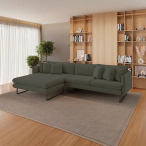 Sofá com chaise de espuma d28 macia e almofadas soltas no encosto, proporcionando várias posições para conforto. Os braços finos valorizam o ambiente, aumentando o espaço interno do produto. Os pés são metálicos. Produto Montado: Sim Acompanha Almofadas extras: 06 Acompanha Chaise: Sim Almofada do assento: Fixa Almofada do encosto: Removível Altura do assento até o chão: 51.0000 Altura do Encosto: 41 cm Ambiente Principal: Sala de Estar codigo_ean: 7900288160256 Complexidade da Montagem: Baixa: pode ser montado por uma pessoa sozinha Cor: Verde Cor do Produto: Verde Densidade do Assento: D-28 Enchimento do Encosto: Espuma Estilo de Braço: Braços Quadrados Informações Complementares: Estrutura de eucalipto de reflorestamento de 25mm / espuma contínua d28 com 14cm de perfil / percinta sintética + molas espirais no assento / fecho com ziper nas almofadas / pés metálicos Itens Inclusos: 1 Sofá e 6 Almofadas Lado do Chaise: Lado Esquerdo Linha ou Coleção: Ricco Manual de Montagem e Instalação: https://product-hub-prd.madeiramadeira.com.br/905253347/documents/404da6db-e572-45fc-bfe2-9dc5833cb492295804919017483767430456.pdf Marca: Estofart Material dos Pés: Metal Montagem Flex: Não Necessita Montagem: Sim Origem do Produto: Nacional Peso: 90 kg Pet Friendly: Não Possui Percintas Elásticas: Não Possui Pés: 05 Possui Rodízio: Não Recomendações de Uso, Manutenção e Limpeza: Não expor ao sol ou fonte de calor; não utilizar produtos de limpeza como detergente, álcool, solventes, ou produtos químicos; para a limpeza, utilizar pano umedecido em água, sabão neutro e escova de cerdas macias, deixando secar a sombra. em caso de excesso de poeira, usar aspirador de pó; não provocar tensões desproporcionais no assento, causada por quedas ou pulos; evitar contatos com animais; preservar o produto de objetos aquecidos ou pontiagudos; mantê-lo em local arejado; transportar com o máximo de cautela. Sistema de Montagem: Parafusação dos pés na base do sofá e união entre os módulos por engate metálico Suporta Até (kg): 100 kg Tecido Predominante: Linho Tipo de Encosto: Fixo Tipo de Sofá: Chaise Marca: Não Informado