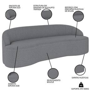 Com design curvo e incrivelmente moderno, o Sofá 5 Lugares para Sala de Estar Living 280cm Theo D06 Bouclê Cinza, da Mpozenato, é ideal para a sua sala de estar ou living, pois é uma ótima opção para quem busca um estofado confortável, sem abrir mão do estilo e funcionalidade.