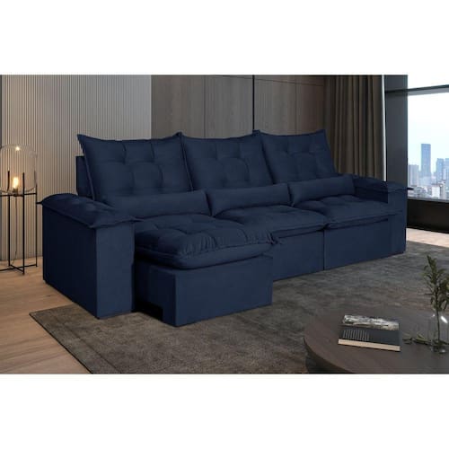 Sofá 5 Lugares Retrátil e Reclinável Atlantis Veludo Azul - Azul Doce