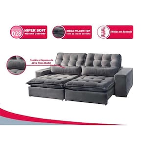 Sofa 5 Lugares Retratil e Reclinavel Bruna Suede Cinza Claro - Moveis Mix