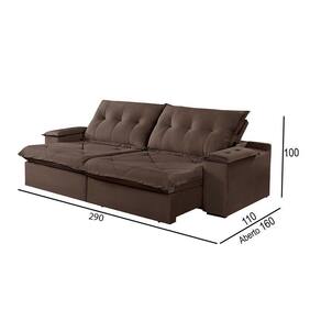 Sofá 5 Lugares Retrátil E Reclinável Martins M-163 Veludo Marrom Sofa 5 Lugares Retratil e Reclinavel Martins M-163 Veludo Caracteristicas: Requer Montagem?: Sim Acessoios inclusos: Nao Acompanha Chaise?: Nao Tipo do Acento, tem Pillow Top?: Retratil, Com Pillow Top De 20 Cm Densidade Espuma Assento: D-28 Possui Mola no Assento? Tipo de mola?: Sim, Molas Ensacadas Possui Persinta? Tipo de Persinta: Sim, Percinta Elastica Tipo do Encosto: Reclinavel Amofadas do encosto Fixa ou Solta?: Encosto Reclinavel, Almofadas Fixa Densidade Espuma Encosto: 100 Fibra Silicone Tem pillow nos Bracos?: Pillow Top 4 Cm Espuma D-28 Posui Pes (Sim ou Nao): Sim Quantidade de Pes: 8 Tipo de Pes (Material): Madeira Acompanha Rodizio (Sim ou Nao): Sim Quantidade de Rodizios: 2 Rodizios Material Rodizio: Silicone Materia Prima: Elcalipto Tratado Revestimento: Espuma D-28 Soft Madeira Aparelhada ou Bruta?: Aparelhada A Madeira e Tratada? (Sim ou Nao): Sim Tipo de Trilho Onde Corre o Retratil?: Tubo Pintado E Bipartido ou Inteirico?: Bipartido Estagios da Catraca: Catacra 5 Estagios